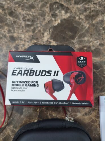 HyperX Cloud Earbuds II – mobil oyun üçün optimallaşdırılmış qulaqdaxili qulaqlıqdır. Yenidən seçilmir cəmi 1 ay istifadə olunub, qutusu hər bir şeyi var. HyperX markasınızn keyfiyyətini bilən bilir. Kompyuter və mobil oyunlarda səs səviyyəsi səsin hardan gəlməsini dəqiqliklə verir. Normal qiyməti 150 -160 manatadır.Bu qiymətə belə qulaqlıq tapmaq çətindir.Markanın keyfiyyətini bilən bilir. Real alıcılar narahat etsin. Nömrənin vatsapı var.