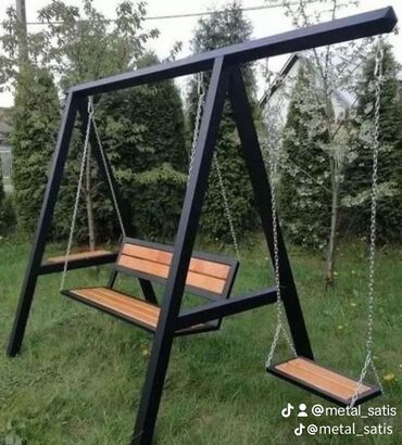 Metal konstruksiyalı yelləncək. Bu yelləncək rahat oturacaq və dayanıqlı metal çərçivəyə malikdir. Müasir dizaynı ilə bağçanız və ya həyətiniz üçün ideal seçimdir. Uzunmüddətli istifadə üçün nəzərdə tutulmuşdur.