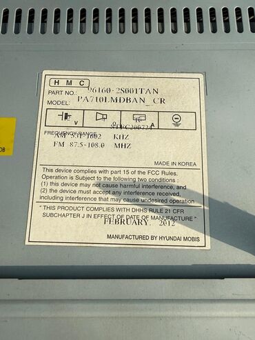 Hyundai orijinal avtomobil maqnitofonu/başlıq (OEM). Xüsusiyyətlər: - CD/MP3 oxuducu (CD-in girişi üst hissədə) - FM/AM radio, stansiya yaddaşı üçün 1–6 düymələri - SCAN, AST, INFO düymələri - AUX...