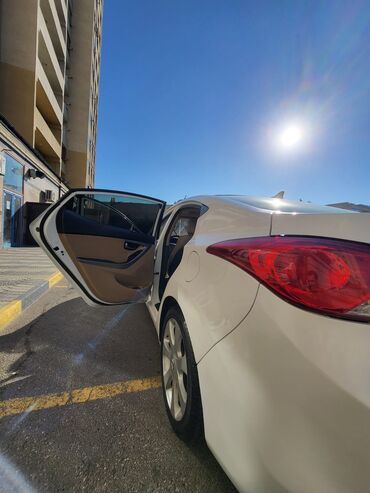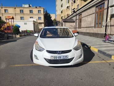 Hyundai Elantra sedan – ağ rəng, AZ nömrə nişanı 99-VK-225. Şəhər və magistral üçün komfortlu və qənaətcil model.