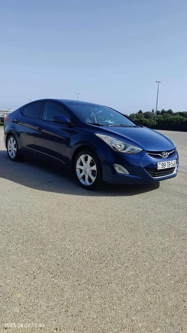 Hyundai Elantra sedan - Korpus: 4 qapılı sedan, göy rəng - Mühərrik: benzin (təxmini 1.6–2.0 l sinfi), ön ötürücülü - Sürətlər qutusu: avtomat - Eksteryer: xrom ön barmaqlıq, projektor tipli ön fa...