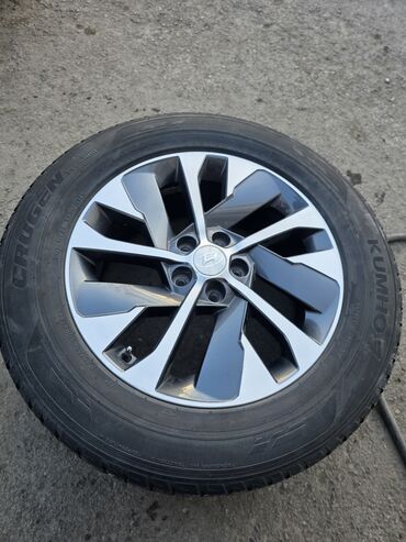 Hyundai orijinal yüngül lehimli disk və şin komplekti. - Disk: Hyundai loqolu, 5 cıvata dəliyi, çoxşüalı dizayn, 18 düym. - Şin: Kumho Crugen HP (H/P), ölçü 245/60 R18, yük/sürət indeksi 105V. - K...