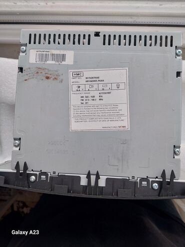 Hyundai Mobis orijinal avtomobil maqnitolası (baş blok) Model: A-9160 (A9100WK), 518C / 1082 kHz qeydli etiket İstehsalçı: Hyundai MOBIS (KMC) Giriş gərginliyi: 14 V DC, mənfi qütblü “ground” Tezl...
