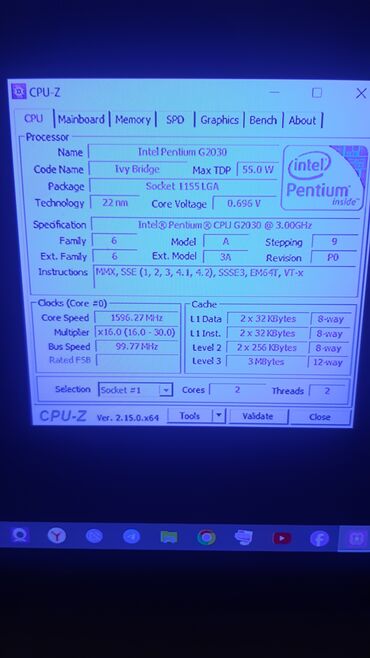 Prosessor Intel Pentium Prosessorlar “LGA 1155 (2ci/3cü nəsil) İntel Pentium”, 2 nüvə, İşlənmiş