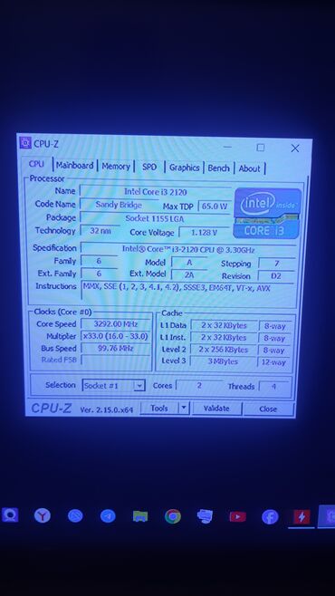 Intel Core i3-2100 prosessor - Model: Intel Core i3-2100 (Sandy Bridge nəsli) - Sürət: 3.10 GHz - Kod: SR05C (üstündə qeyd) - İstehsal yeri: Costa Rica (üstündə qeyd) - Soket: LGA1155 - Nüvə/Sap: ...