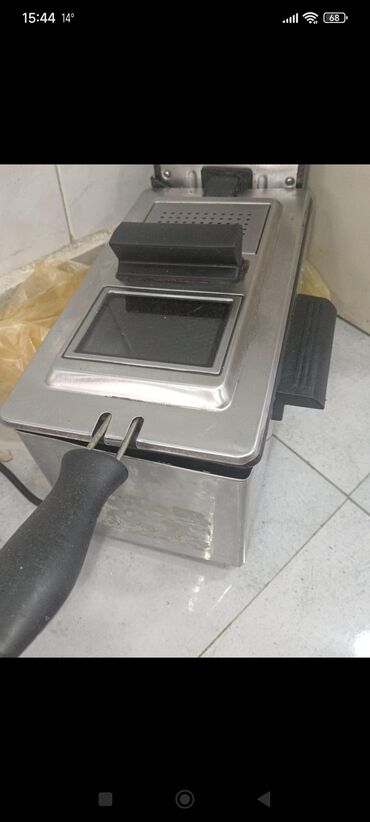 - Elektrik fritozu – paslanmayan korpus, üst qapaqda pəncərə, səbət tutacağı və yan tutacaqlar.