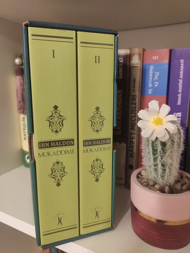 İbn Xəldunun "Müqəddimə" əsəri iki cilddən ibarət kitab dəstidir. Bu əsər İslam dünyasının tanınmış mütəfəkkiri İbn Xəldunun cəmiyyət, tarix, iqtisadiyyat və siyasət barədə düşüncələrini əhatə edir. Kitablar xüsusi qutu içərisində təqdim olunur ki, bu da onları həm qoruyur, həm də estetik görünüş verir. Hər iki cilddə də İbn Xəldunun portreti və əsərin adı qeyd olunub. Bu kitab dəsti tarix, fəlsəfə və sosiologiya sahələrinə maraq göstərən oxucular üçün dəyərli mənbədir.