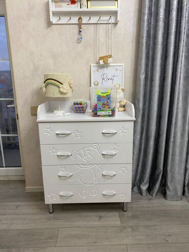Uşaq mebeli , yaxşı vəviyyətdə, eni 110+0.80sm Hündürlüyü 210sm, dərinliyi 0.30sm. Şifoneri də var. Goradildə yerləşir..kompyuter klaviaturası üçün siyirməsi dəvar…