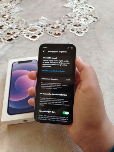 Apple iPhone 12 Pro 256 GB yaddaş 77 Pil Face İd və true tone işləyir. Hər şey işlək vəziyyətdədir. Təmirdə olmayıb, heç bir detalı dəyişdirilməyib, Yan korpusda və ekranda cuzi cızıqlar var. Hər i...