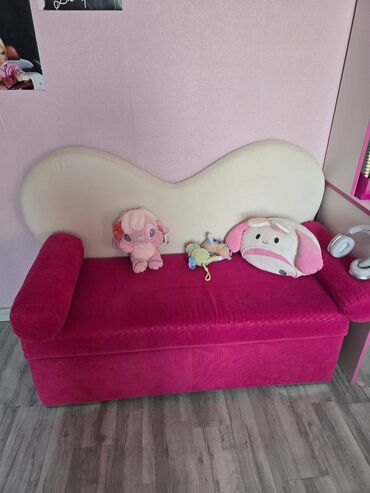 Ideal Veziyyetde qiz ucun yatag, divan, masa. Yataq bazavi, ortopedik matras ideal veziyyetde. Divanin alti da bazali.