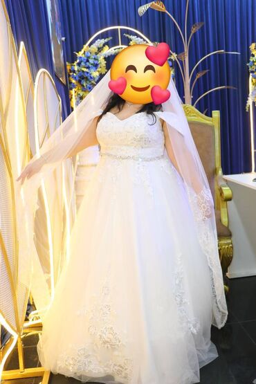 İdeal vəziyyətdə böyük bədən gəlinlik. 1 dəfə geyinilib yeni alınmış gəlinlikdir. Fatası üzərində hədiyyədir. Real alıcıya cüzi endirim olunacaqdır. Ciddi şəxslər narahat etsin.