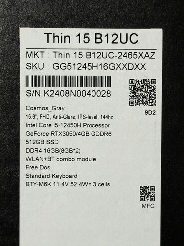 Yeni MSI, 16 ", Intel Core i9, 1 TB, Ünvandan götürmə, Ödənişli çatdırılma