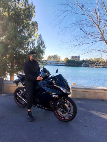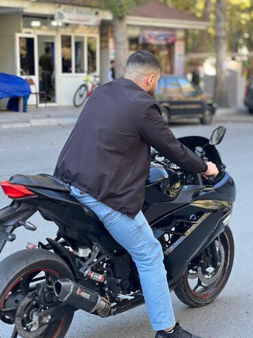 - Şəkillərdə iki fərqli tip motosiklet görünür: biri tam sport model, digəri isə şəhər/kommuter tipidir.