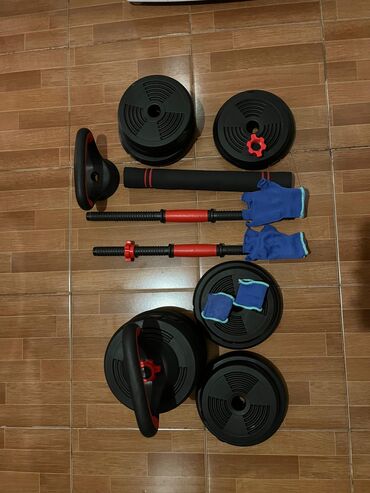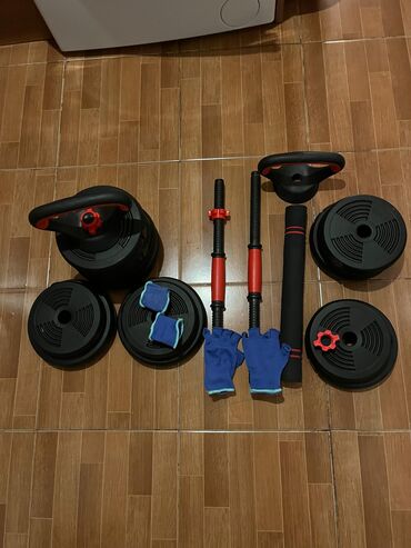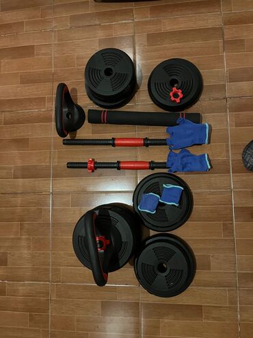 Ünvandan götürməÜmumi ağırlığı 30 kq olan İdman seti yeni alınıb 2 3 defe istifade edilib 2 dene qantel çubuğu özünün blekliyi əlcəyi üstünde verilir təzədir defekti yoxdur 90 AZN satıram 0506350244 Əlaqə saxlaya bilərsiz