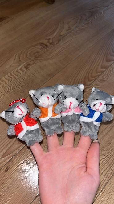- 4 ədəd pişik barmaq kuklası (qırmızı, narıncı, çəhrayı və mavi jiletli modellər)