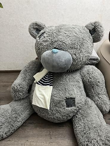 Böyük yumşaq oyuncaq ayı - Hündürlüyü: 150 sm (şəkildə qeyd olunub) - Rəng: boz - Material: yumşaq plyuş parça, içlik sıx və həcmlidir - Dizayn: iri parlaq gözlər, ağ-burunlu gülərüz sifət, boynun...