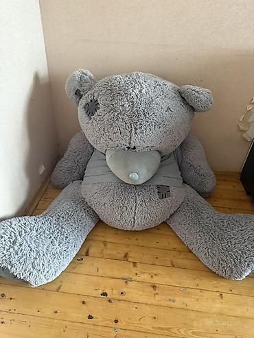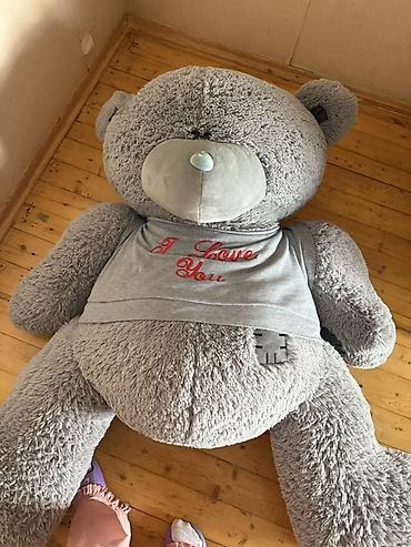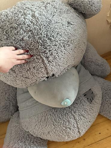 Böyük yumşaq oyuncaq ayı - Hündürlüyü: 150 sm (şəkildə qeyd olunub) - Rəng: boz - Material: yumşaq plyuş parça, içlik sıx və həcmlidir - Dizayn: iri parlaq gözlər, ağ-burunlu gülərüz sifət, boynun...