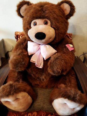 Nəhəng yumşaq oyuncağ ayı - Rəng: krem rəngi gövdə, tünd qəhvəyi qulaqlar, pəncələr və bəzək detallar - Boy ölçüsü: çox böyük ölçülü, insan boyuna yaxın (şəkildə göründüyü kimi) - Material: yumşaq...