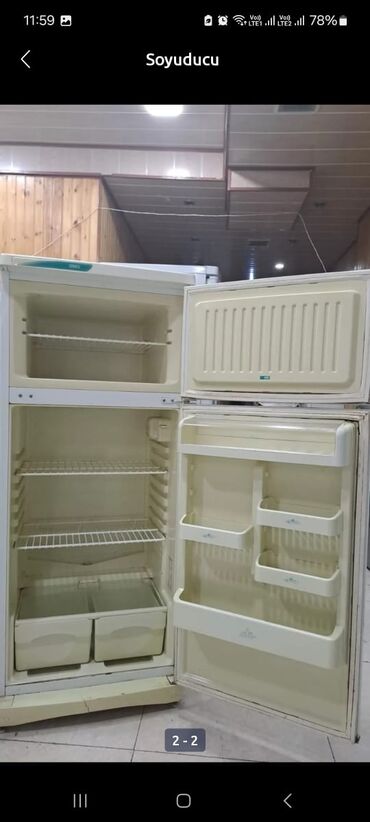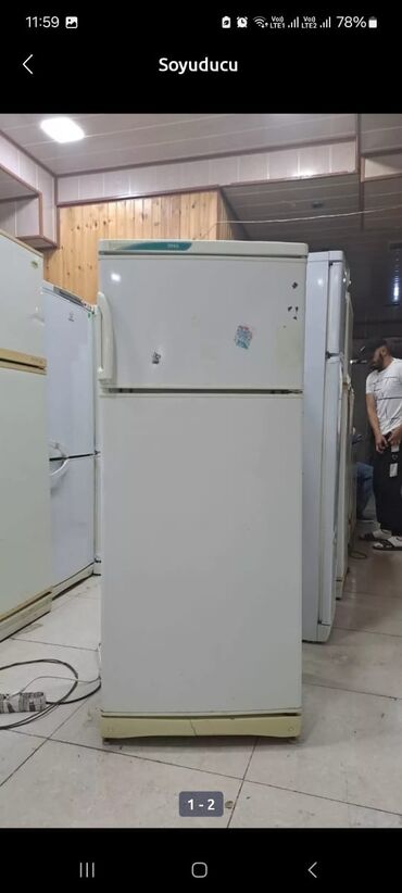 Indesit iki qapılı soyuducu - Yuxarıda ayrıca dondurucu bölmə, aşağıda əsas soyuducu kamera - Daxildə işıqlandırma - Soyuducu kamerada 3 ədəd metal rəf, alt hissədə 2 ədəd şüşə tərəvəz/qəlyanaltı ...