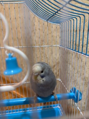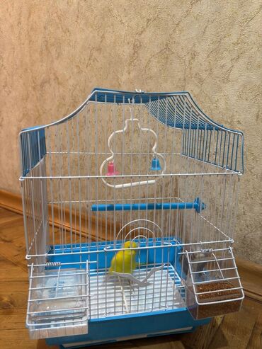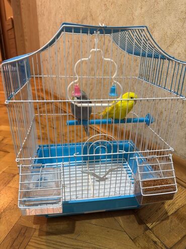 Məhsul: Dalmatian (budaq) qəfəslə birgə dalğalı tutuquşu cütlüyü Təsvir: - İki ədəd dalğalı tutuquşu: biri yaşıl-sarı, digəri mavi-boz rəng çalarında. - Metal ağ çubuqlu, mavi altlıqlı qəfəs daxil...