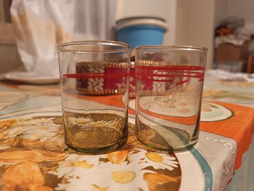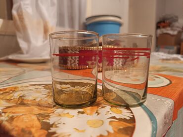 Şüşə stəkan dəsti – 2 ədəd - Material: şəffaf bərk şüşə - Forma: silindrik, kənarları vertikal relyefli - Hündürlük: təxminən 7–8 sm - Ağız diametri: təxminən 5–6 sm - Dib hissəsi qalınlaşdırılmış...