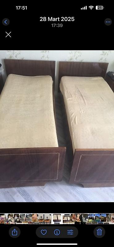 İki ədəd tək nəfərlik çarpayı dəsti - Model: klassik dizaynlı, taxta