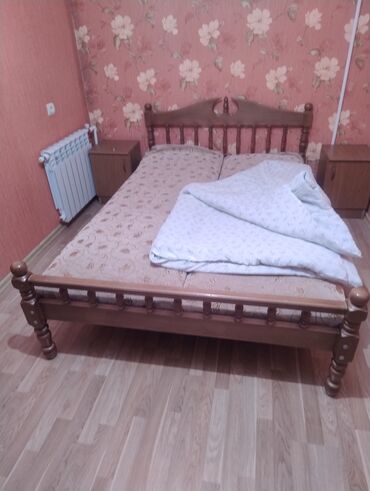 İki ədəd taxta tək nəfərlik çarpayı dəsti. - Material: bərk taxta karkas, vintlərlə möhkəmləndirilmiş birləşmələr - Ölçü: standart tək nəfərlik (yan‑yana qoyulduqda iki nəfərlik kimi istifadə olun...