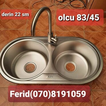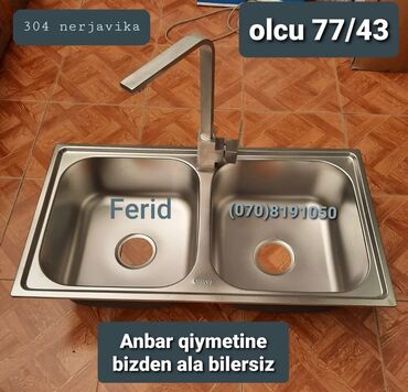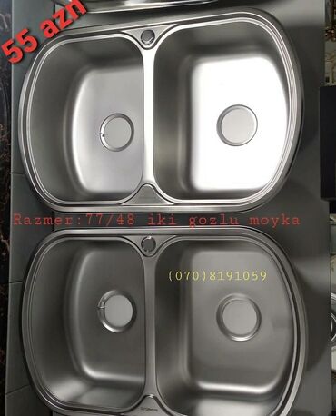 Şəkildə göstərilən modeldə qiymət: 55 AZN (77×48 sm iki gözlü moyka).