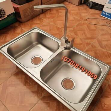 Mətbəx üçün iki gözlü paslanmayan polad moykalar və qarışdırıcı kranlar - Material: 304 nerjavika (paslanmayan polad), mat səth - Variantlar: iki gözlü modellər - Ölçülər: - 77×43 sm - 77×48 s...
