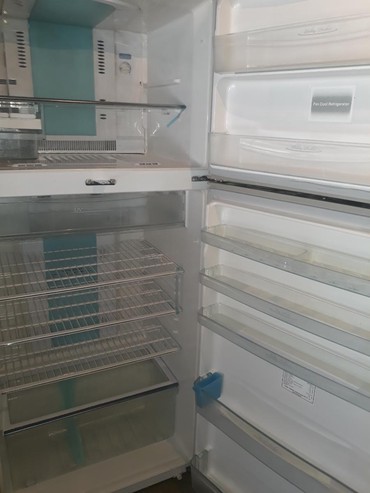 Soyuducu Samsung markasına məxsusdur və iki bölmədən ibarətdir: yuxarı hissə soyutma, aşağı hissə isə dondurma üçündür. Qapısı tünd boz rəngdədir və üfüqi tutacaqlara malikdir. Elektron displeyi va...