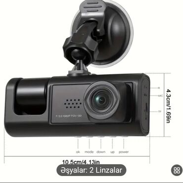 Avtomobil üçün ikili linzalı DVR (1080P) Xüsusiyyətlər: - 1080P Full HD video yazımı - İkili kamera: ön və salon görüntüsü eyni anda - 2.0–2.4" rəngli ekran (şəkildə göstərilən korpuslu model) - G...