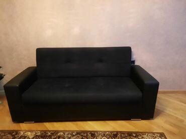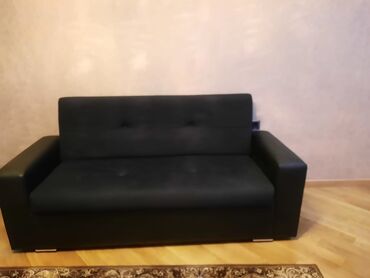 Minimalist dizayna malik, qara rəngli iki nəfərlik divan.