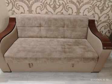 Rəng: bej (süet effektli oturacaq və arxalıq) + tünd qəhvəyi taxta qol dayaqı.