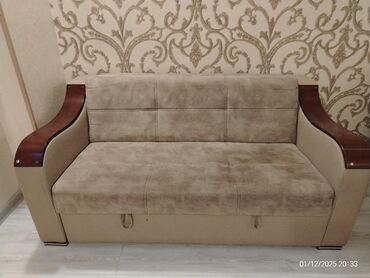 - Kompakt ölçülü, oturacaq və bel hissəsi yumşaq süet tipli bej parça ilə üzlənib