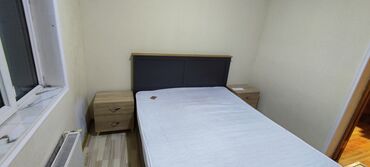 Mebel dəsti – yumşaq başlıqlı iki nəfərlik çarpayı və tünd boz rəngli tumbalar. - Çarpayı: parça üzlü, yastı başlıq panelləri ilə, müasir minimal dizayn. Korpus rəngi tünd boz, taxta döşəmələrlə u...