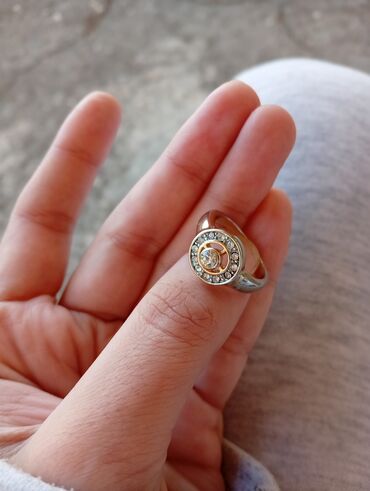 Zərif çoxsıralı üzük - Material: gümüşü rəngli metal ərinti - Dizayn: üçqat halqa formasında; hər sırada tam dairə boyunca parlaq şəffaf daşlar (zirconiya tipli) bərkitmə - Kəsim: yuvarlaq/brillia...