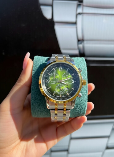 Qutuda yaşıl parça yastıq üzərində təqdim olunur. Şıq görünüş, diqqətçəkən yaşıl siferblat və möhkəm metal konstruksiya ilə fərqlənir.