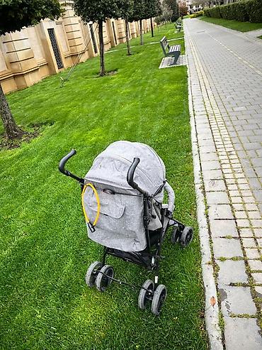 Uşaq arabası – təkərli, qatlana bilən model Öz qiyməti 350 manatdır amma 60 manata satılır. - Rəng: boz - Təkərlər: iri arxa təkərlər və fırlanan ön təkərlər; arxa oxda ayaqla idarə olunan mexaniki...
