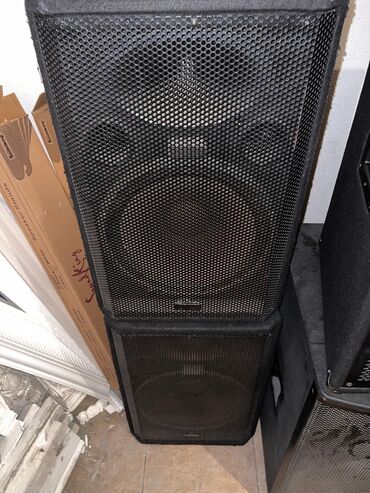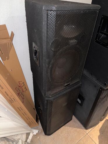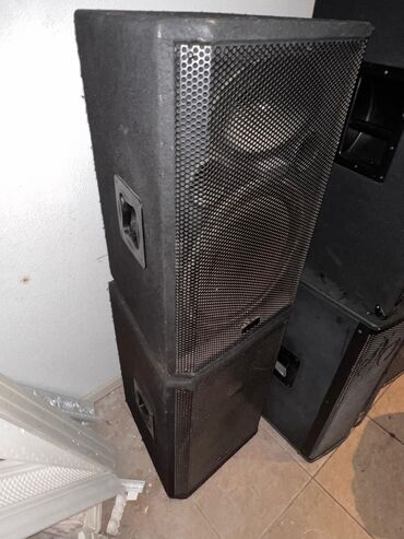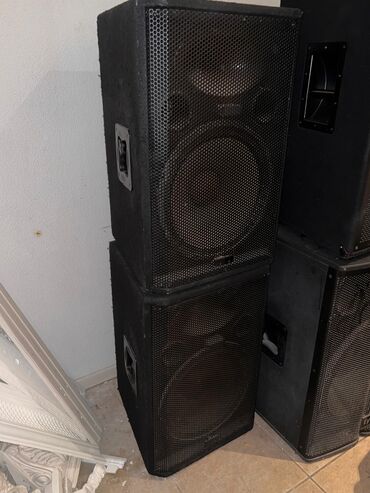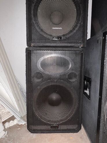 - Hər kabinetdə: iri woofer (təx. 15"), yuxarı hissədə mid/tweeter bölməsi