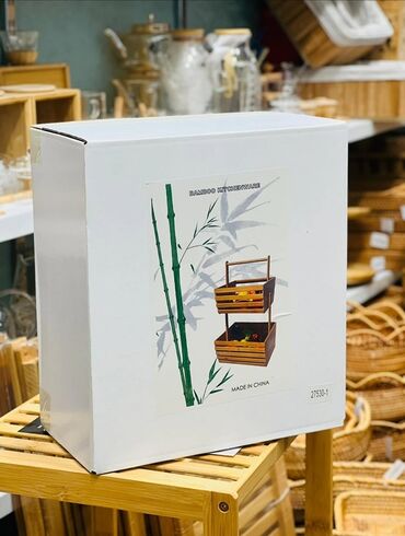 Qutudakı məzmun: 2 mərtəbəli bambuk səbət qurğusu (üst tutacaqlı).