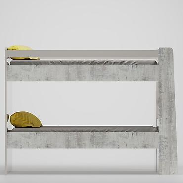 İki mərtəbəli uşaq/yataqxana çarpayısı - Material: ağac teksturalı laminat + ağ rəngli panellər - Konstruksiya: aşağı və yuxarı olmaqla iki ayrı yataq yeri - Ortada inteqrə olunmuş nərdivan – pill...