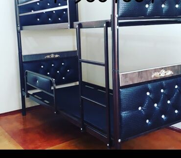 İkimərtəbəli metal çarpayı çərçivəsi - Material: möhkəm metal konstruksiya - Rəng: tünd qəhvəyi/şokolad tonları - Dizayn: yuxarı və aşağı qatlarda bəzəkli başlıq və ayaqlıq, yan qoruyucular - Birl...