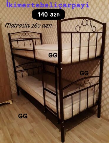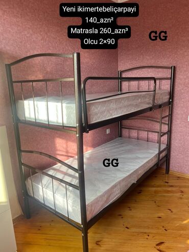 İkimərtəbəli metal çarpayı - Material: möhkəm metal karkas, toz boya örtük - Ölçü: 2×90 (iki 90 sm-lik yataq yeri) - Yuxarı mərtəbə üçün qoruyucu məhəccər - Yan pilləkənlə çıxış - Alt və üst hissə...