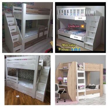 İki mərtəbəli carpayilar uşaq carpaylar detski çarpayı yataq otağı çarpayısı - Model: Yeni sifarişlə hazırlanır (şəkillərdə müxtəlif dizayn nümunələri). - Rəng və dizayn: Ağ, ağ–ağac kombini və ...