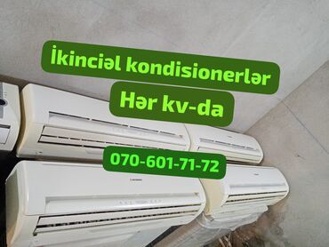 Split sistemİkinciəl kondisionerlərin satışı. Hər kvadratda əla vəziyyətdə kondisionerlərimiz var. İsti və soyuq rejimli, heçbir problemsiz mallardır. Malların hamısı yuyulub təmizlənib tam yoxlanılıb. Çatdırılma və qurlaşdırılma daxildir. Gətirib qurub tam təhvil veririk.