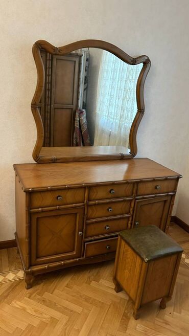Çarpayı tumbalar 400 azn, güzgülü komod 100 azn, şifoner 300 azn. Dəst alsaz endirim olacaq. Vəziyyeti normaldır. Səliqəli işlənilib.