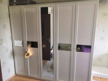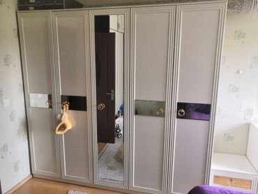 Yataq otağı mebel dəstləri 1) Tünd boz-qızılı xəttli model - Dördqapılı güzgülü şkaf - 2 tumbalı çarpayı - Komod + güzgü - Matras hədiyyə - Qiymət: 1250 AZN (şəkildə göstərildiyi kimi) 2) Krem/qə...