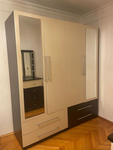 Yataq otağı dəstləri 1) Ağ-minimal dizaynlı dəst – 650₼ - Geniş üç qapılı şkaf (ortada açıq bölmə) - Güzgülü komod - İki tumbalı çarpayı (başlıq tünd boz yumşaq panel) - Müasir xəttlər, ağ rəngli ...