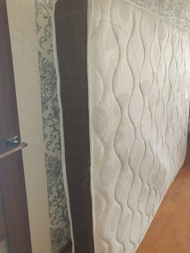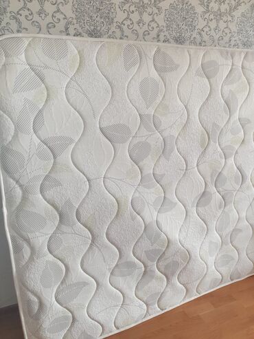 İki nəfərlik döşək - Ölçü: təxminən 160x200 sm (şəkillərə əsasən king/queen tipli genişlik) - Rəng: açıq krem - Üst qat: naxışlı, pambıq əsaslı toxuma - Daxili: ortopedik tipli yaylı konstruksiya ...