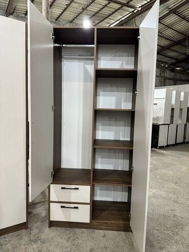 - Sol bölmə: paltar asmaq üçün metal ştanq və üst rəf